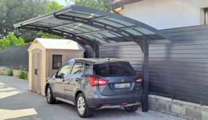 Újabb, a webáruházunkban vásárolt Arizona Wave 5000 kocsibeálló készült el. Szűk helyekre, telekhatárra, mindenhova, ahol egy legalább 4 tartóoszloppal rendelkező kocsibeálló már nem opció, mert a tartóoszlopok akadályoznák a be- és kijárást, ott az Arizona Wave 5000 kocsibeálló a tökéletes választás. Extrán megerősített vázszerkezet, porszórásos festékbevonat és szemet gyönyörködtető megjelenés!Köszönjük a képeket, gratulálunk a választáshoz!