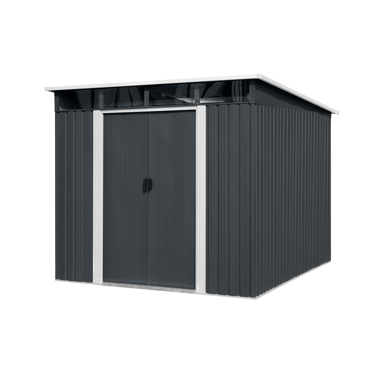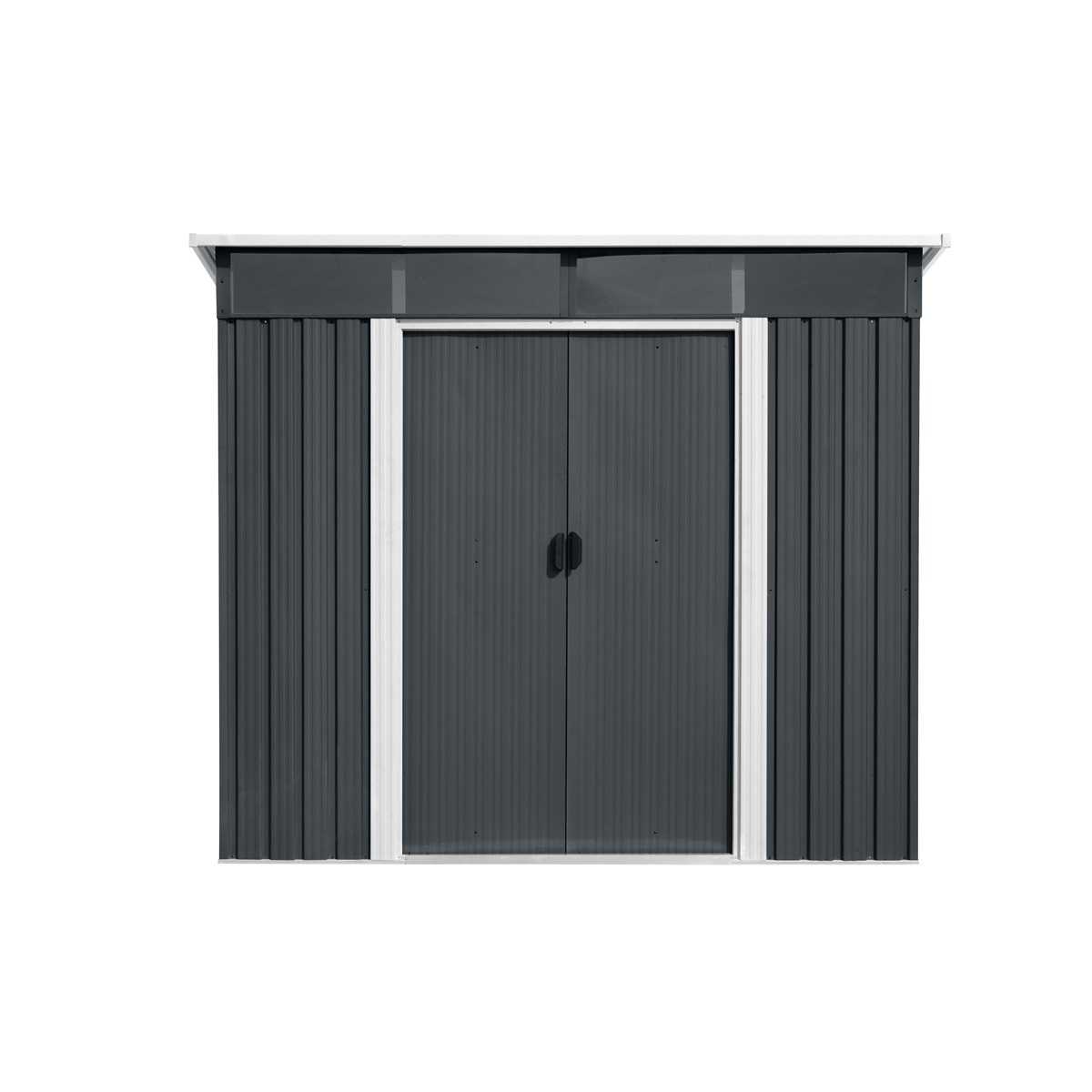 Riwall PRO RMSP 9×8 antracit LUX fém kerti tároló 2,4 x 2,8 m lapostetővel (antracit)