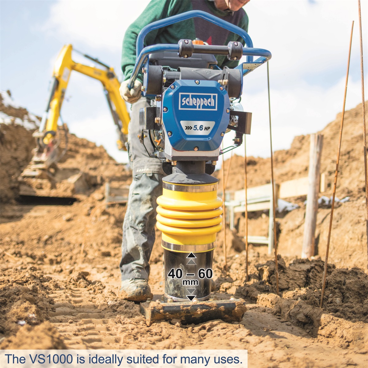 A VS 1000 vibrációs döngölőgép kiváló ár-érték aránnyal rendelkezik, és esetleg érdekelheti Önt, amennyiben építkezik, karbantartási munkákat végez a ház körül, vagy építési munkákkal foglalkozik. A döngölő kiválóan alkalmas a homok, a kavics, az agyagos talaj vagy vegyes talaj, tömörítéséhez olyan helyeken is, ahol más géppel nehezebb dolgozni, úgymint a házfalak mentén, közműépítéseknél, építési munkagödröknél, stb. A gépet nagyon kényelmesen és egyszerűen lehet kezelni a masszív, acélkereten elhelyezett kezelőegységgel. Az acélkeret egyben védi a motort és a sebességváltó érzékeny részeit az esetleges sérülésektől. Az egész gépet rendkívül jól kiegyensúlyozták, ennek köszönhetően nagyon könnyű tartani vele a döngölési irányt munka közben, ami ebben az árkategóriában meghaladja az átlagon felüli értéket. A magas 1000 kg-os ütőerő miatt könnyen alkalmazható bármilyen talajtömörítési feladathoz. A világ egyik legnagyobb motorgyártója által készített motor érzékeny szűrőberendezéssel van ellátva a poros környezetben végzendő munkákhoz, könnyen indítható, csendes, megbízható és gazdaságos az üzemanyag fogyasztása is. A komfortosabb munkavégzéshez a gépkeret hatalmas gumírozott rezgéscsillapítókon van elhelyezve. A görgők a gép tartozékai, amelyek lényegesen megkönnyítik annak mozgatását.