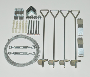 A rögzítő rendszer szett minden olyan tartozékot tartalmaz, amely szükséges az üvegháznak a stabil alaphoz, vagy közvetlenül a földbe történő rögzítéséhez.